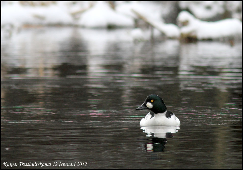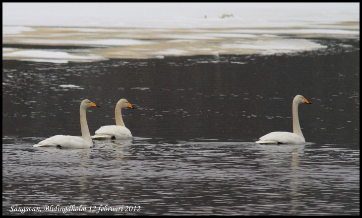 12 februari. Sångsvan, strömstare och knipa vid Tresshults kanal. Inget vidare väder så bilderna är kontrastlösa. |