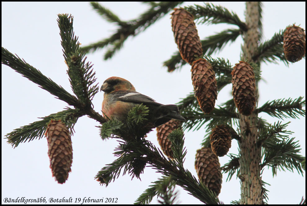 Helt fågeltomt lär det väl aldrig bli i industriskogen. Grankottsspecialisten på bilden är en mindre korsnäbb. I år har vi ett bra kottår så man hör och ser de överallt. |