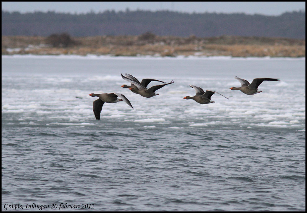 26 februari. Vi avslutade våra utflykter med ett besök vid Hittarp. Gravänder rastade vid revet. |