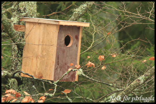 22 februari. Vi har satt upp en holk avsedd för pärluggla. Det är numera sällan som vi hör eller ser några pärlugglor men kanske beror det på bristen på bohål. Kanske kan holkar hjälpa upp situationen men visst är det färfärligt att dagens skogsbruk tar så liten hänsyn till skogens fåglar. Man kan gå timmavis i dagens skogsmark utan att se ett endaste hålträd. Ska vi klara av att behålla fågelfaunan i skogsmarkerna måste ridåer och kantskogar sparas längs bäckar, mossar och sjöar. Och holmar med fastmark ute i sjöar och myrar måste också få stå kvar. Viktiga trädslag är asp och sälg men också al och bok. |