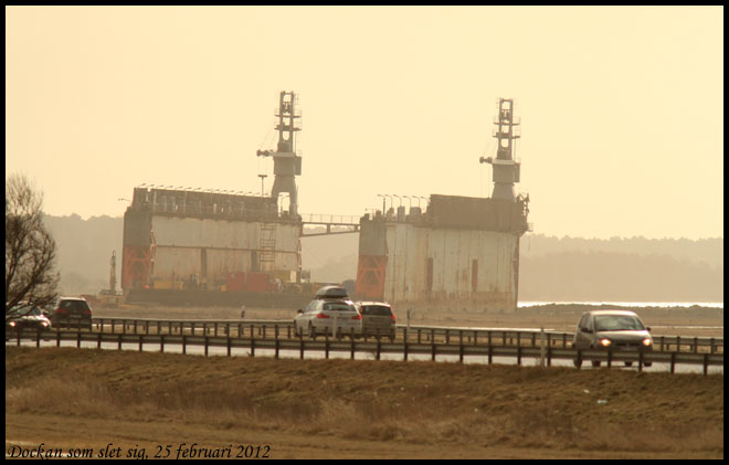 25 februari. En torrdocka slets sig i Landskrona hamn och drev i land på strandbetesmarkerna vid Lundåkrabukten. Helt otroligt! |