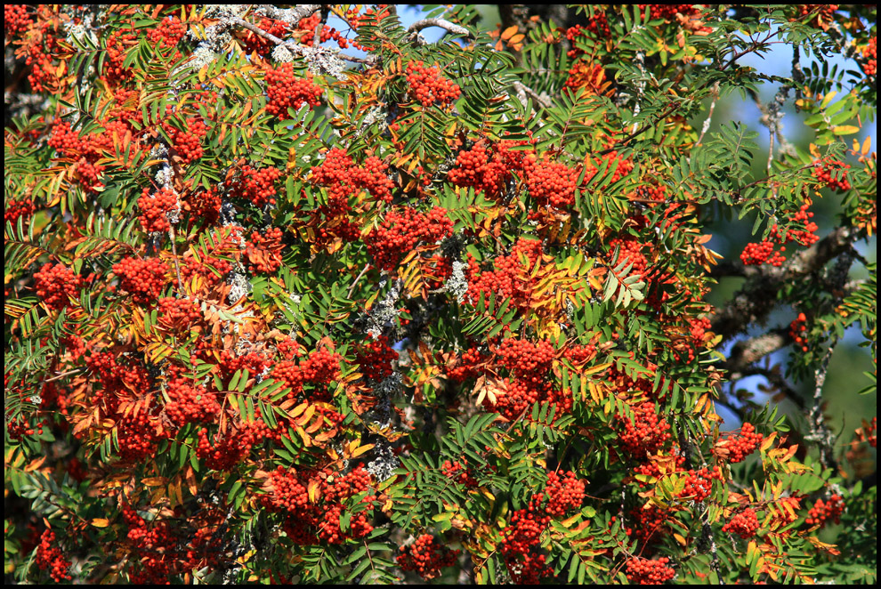 3 augusti. Det är gott om rönnbär i år. Det ska bli intressant att se hur höstens fåglar ska påverkas av det. |