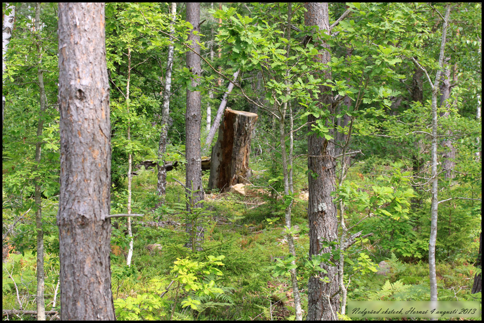 Nedgrävd ekstock som förhoppningsvis kan ge livsutrymme till intressanta insekter. |