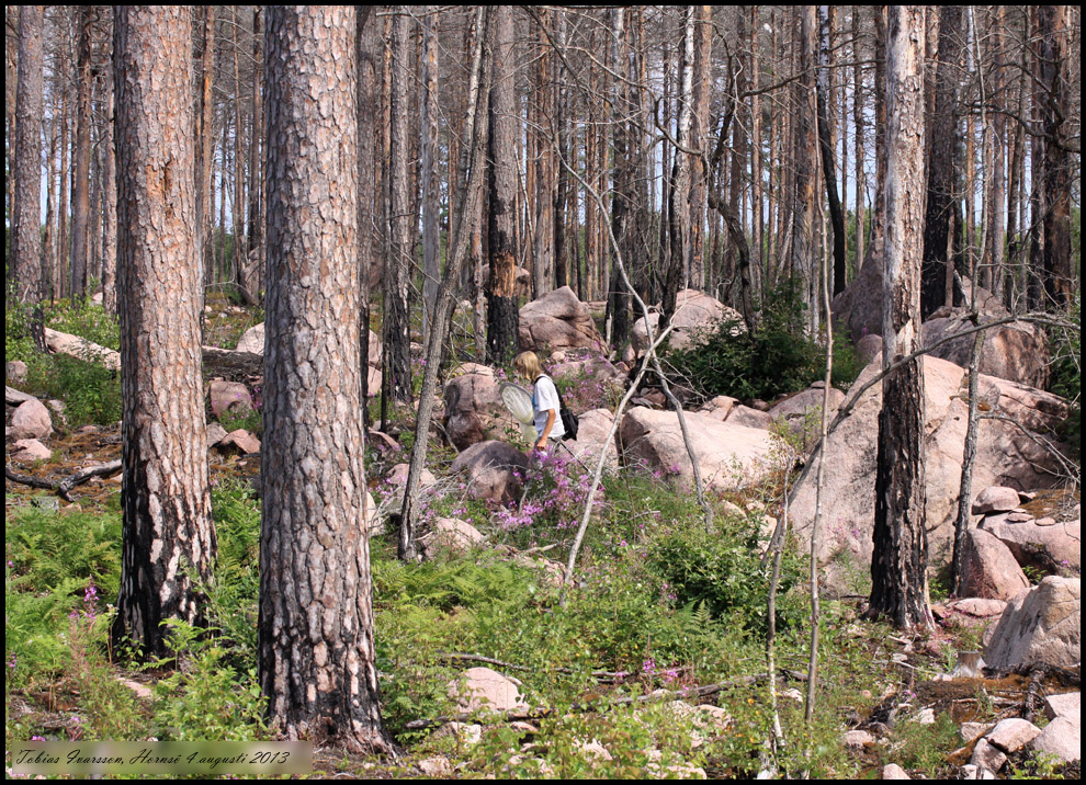 Tobias Ivarsson i naturvårdsbränd skog. |