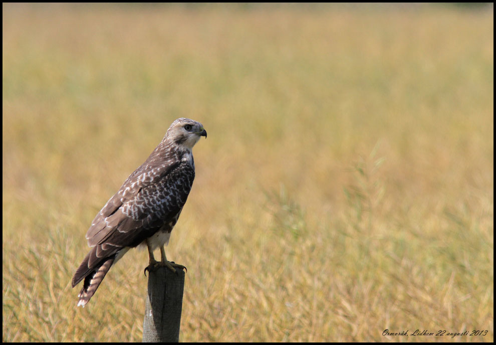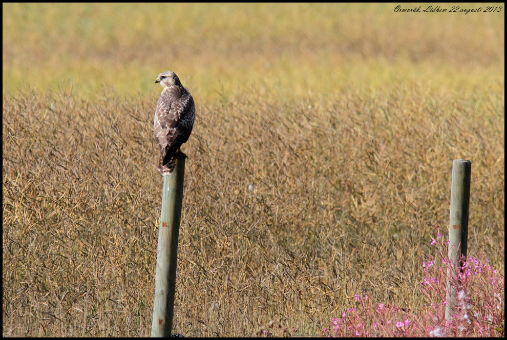 22 augusti. På hemväg från ringmärklningen i Högnalöv fick jag fotochanser på den här ormvråken i kurvan vid Lidhem. |