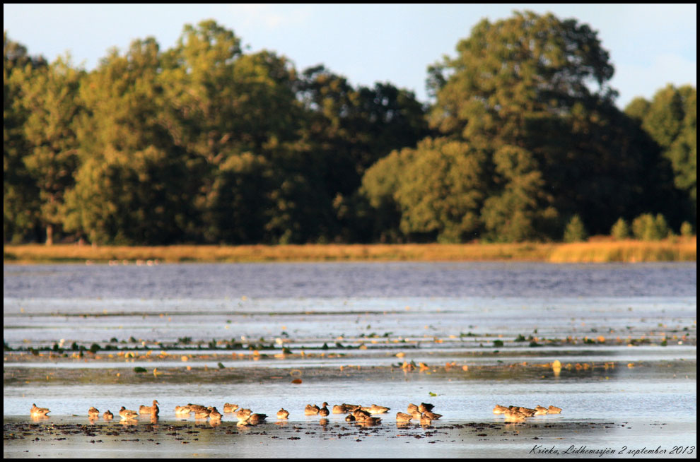 2 september. Vi har gått genom terrängen på Lidhemssjöns sydvästra sida för att komma närmre dybankarna. En del vadare fanns men avståndet är fortfarande för stort för fotografering. |