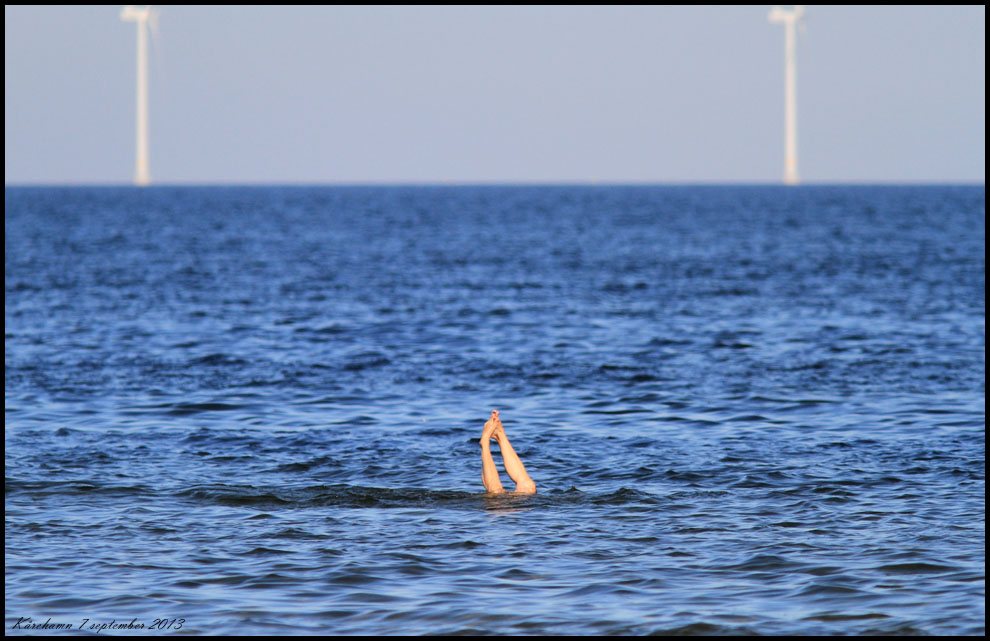 Lena tar sig ett dopp vid badet i Kåre hamn. |