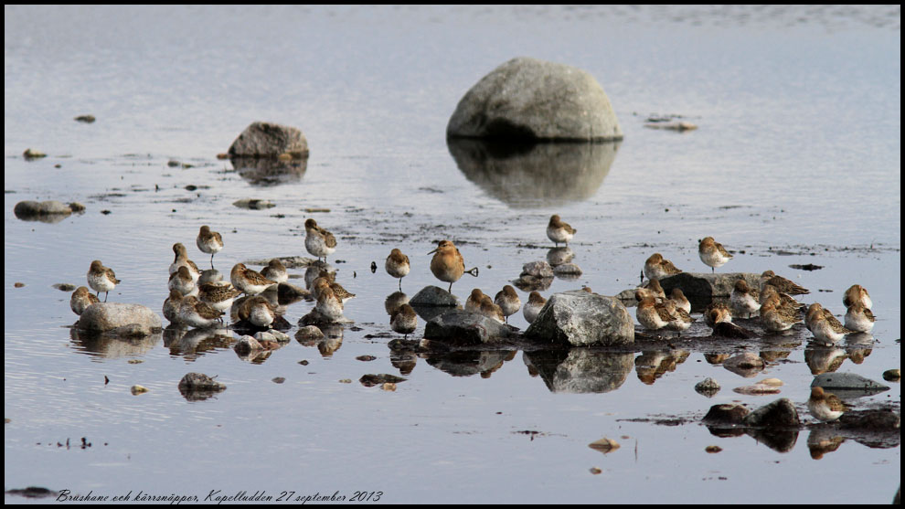 22 september. Vid Knisa mosse rastade minst 25 svartsnäppor. Tjusigt. |