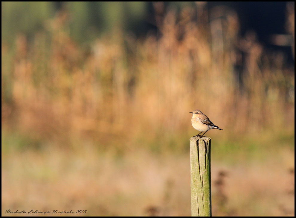 30 september. En timmes skådning före jobbet. Fantastiskt höstväder med is på vindrutan. Jag gick ner till södra Lidhemssjön och fick se två småsnäppor som upptäcktes igår. Sikten var perfekt och vattenytan utan en krusning. |