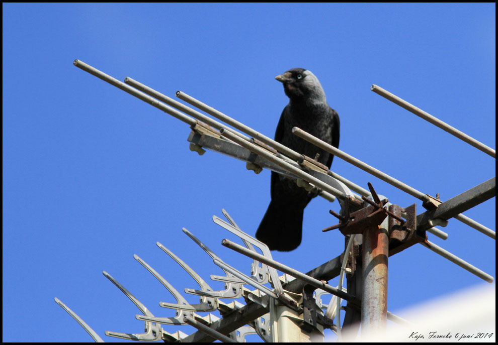 6 juni. Vi har hjälpt till med flytten till Fornebo idag. Kajor bor i en ventil på taket. |