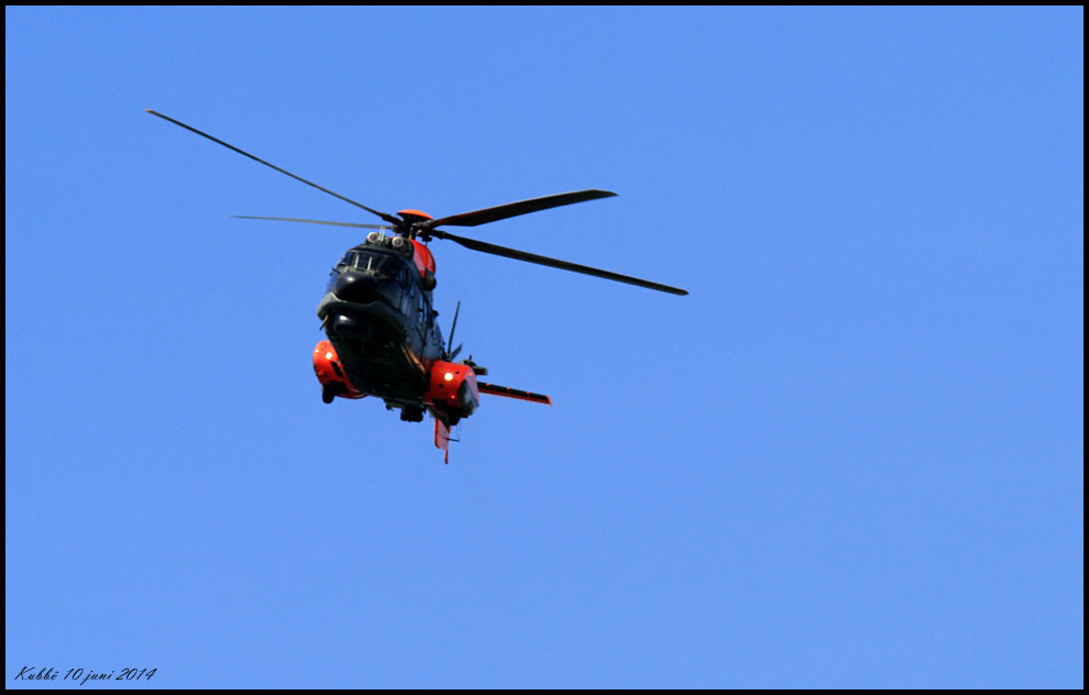 10 juni. För några veckor sedan var det en Hercules och idag var det en helikopter. Tänk att man är så intressant! |