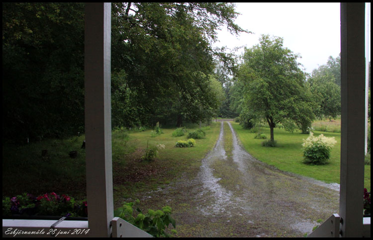 28 juni. Ett kraftigt regn- och åskoväder passerade över Esbjörnamåla. Uj vad det regnade! |