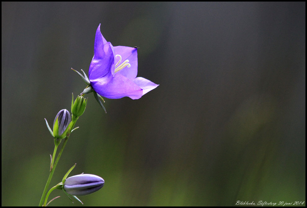 30 juni. Utflykt med barnbarnen till Fiskestadsjön södra del. Stor blåklicka eller är det hässleklocka? |