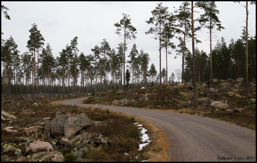 1 mars. Vägen till Kylleskruv mellan Herråkra och Lenhovda. Vilken skillnad om man jämför med åsnenbygden