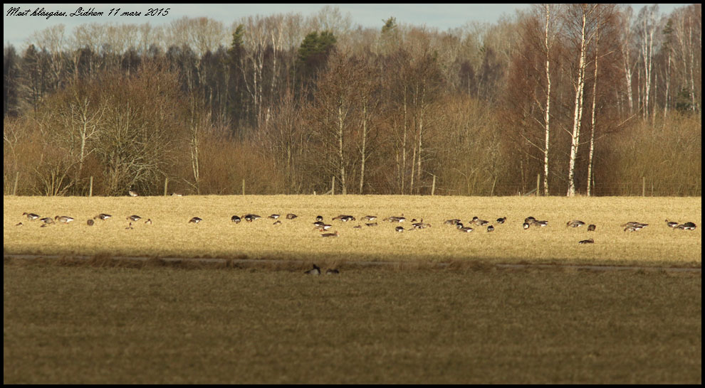 11 mars. Dagens tur gick till Lidhem. På fälten i sjöns södra del rastade ungefär femtio bläsgäss. |