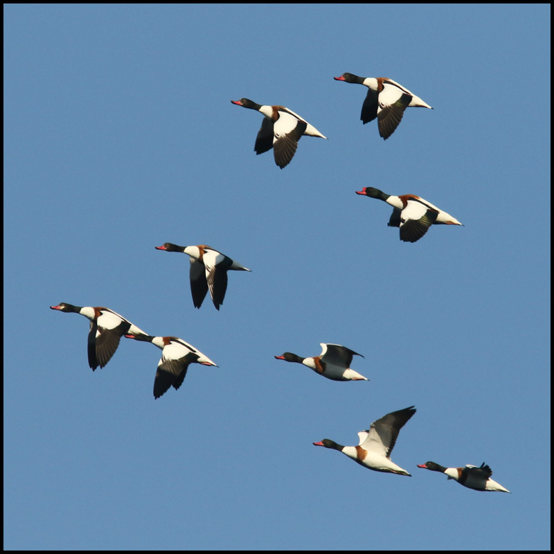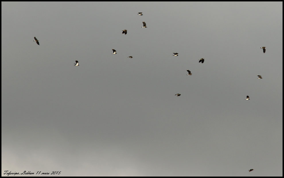 En stund senare kom hela gruppen flygande rakt över mig men det är inte lätt att få bra bilder mot en ljus och molnig himmel. |