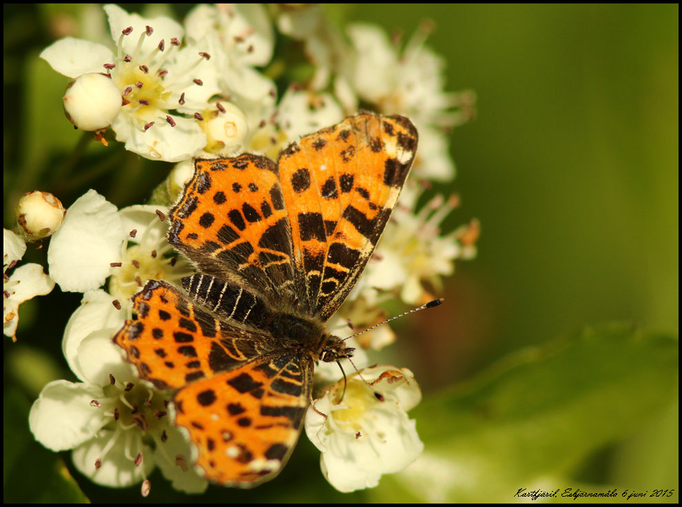6 juni. Lite fjärilssök hemma på tomten innan det kom moln och lätt regn. Kartfjäril. |