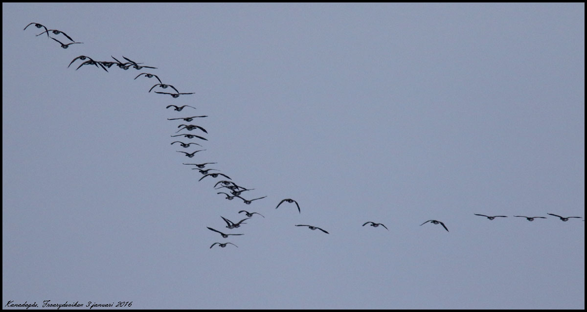 Förmiddagens promenad gick ner till Froarydsviken. Nittio kanadagäss sträckte mot sydväst. |