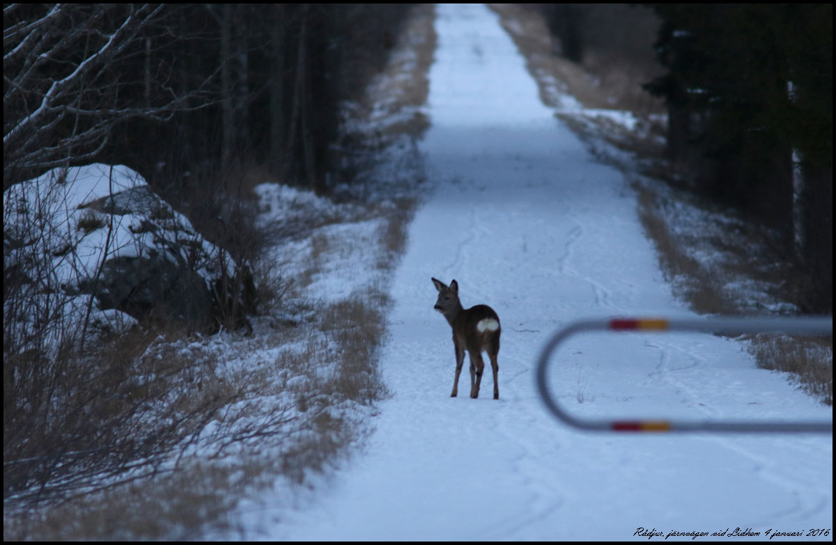 Sedan förra året (eller när det var) är den gamla järnvägen avstängd för biltrafik, en klar försämring för oss som tittar på fåglar i området. Bilen fungerar ju mycket bra som gömsle så förr kunde vi räkna gäss och leta efter udda gåsarter utan att kliva ur bilen. Då kunde man se gässen på nära håll och därmed lättare hitta spetsbergare och bläsgäss och kanske t o m fjällgås. Dessutom kunde man lätt besöka fågeltornet i sjöns norra del. Vill man dit nu måste man köra runt antingen via 27:an och Uråsa eller hela vägen genom Jät och förbi Uråsa station, en sträcka på ungefär en mil. Men visst, rådjur kan ju numera röra sig säkert. Antalet cyklister är mycket få och nu så här års är det nog ingen alls. Men spår efter en fyrhjuling och en moped kunde ses. En lyckad satsning för turismen.