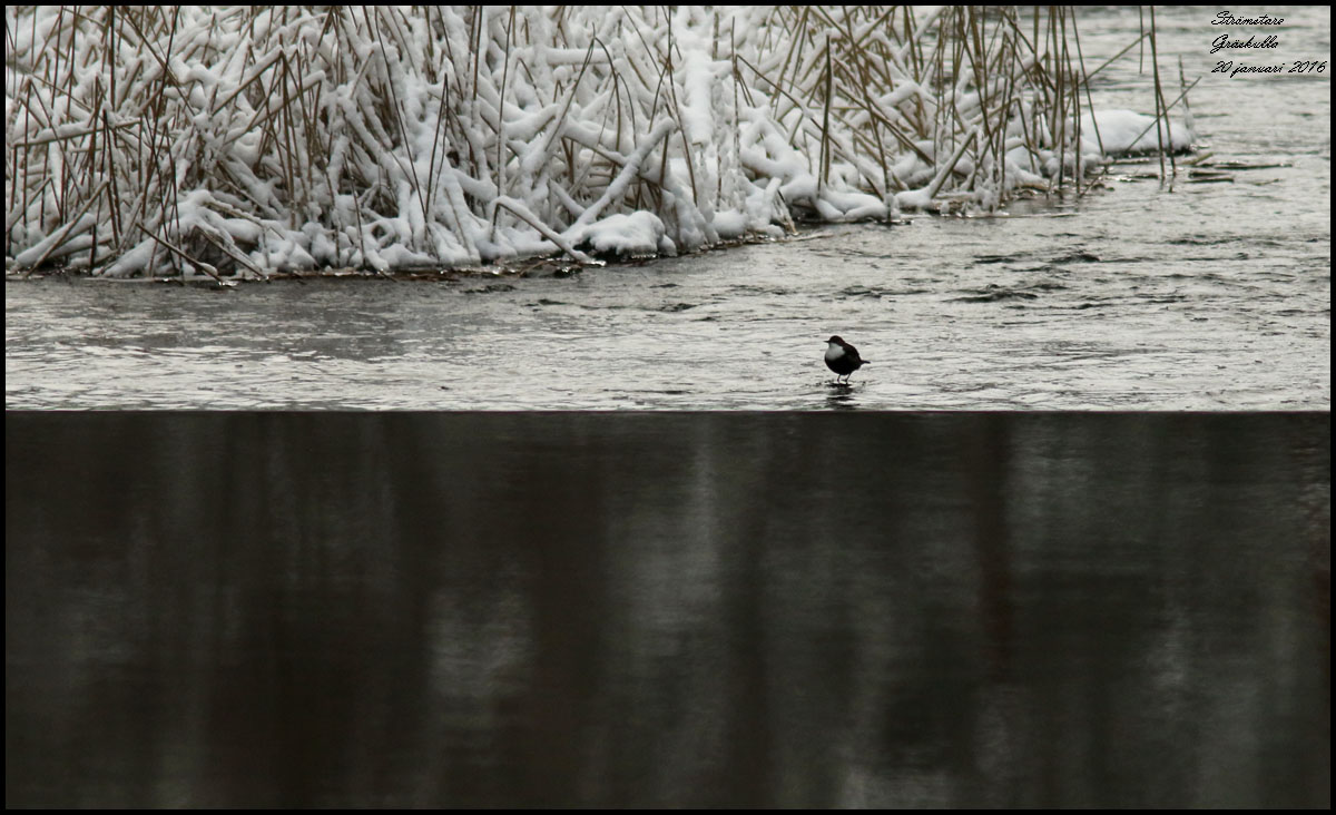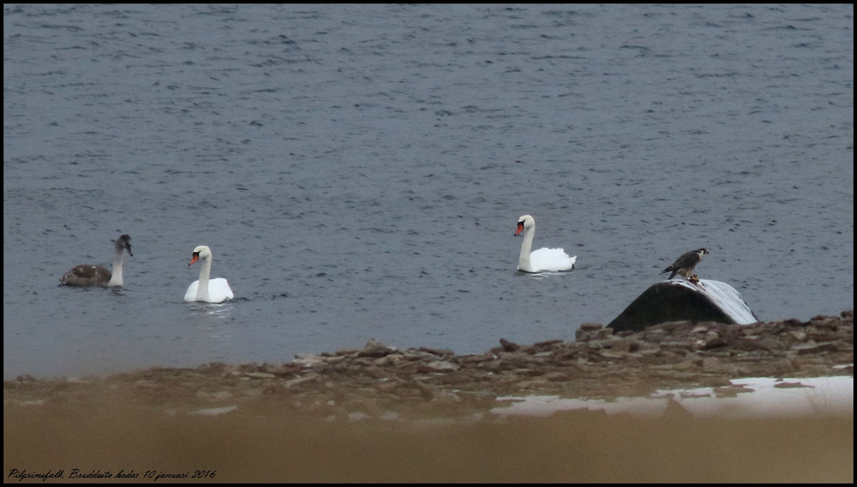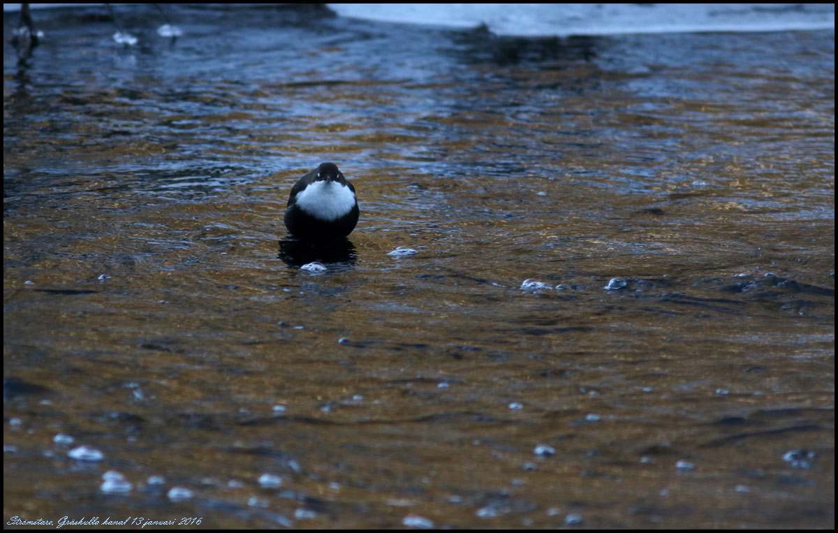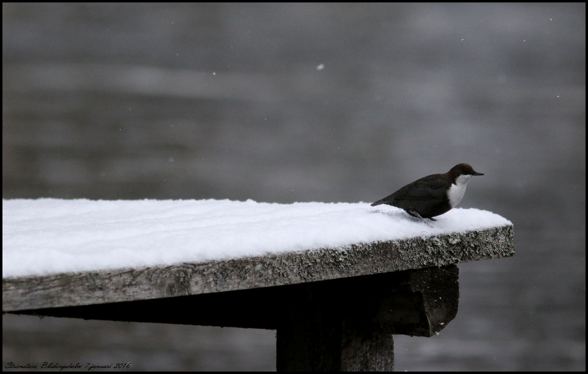 20 januari. Fortsatt vinterväder med 7 minusgrader och lite mer snö som kom igår. Vid järnvägsbroarna vid Blidingsholm fanns en smådopping. Bilden är tyvärr dålig men det är ju inte var dag man ser smådopping |