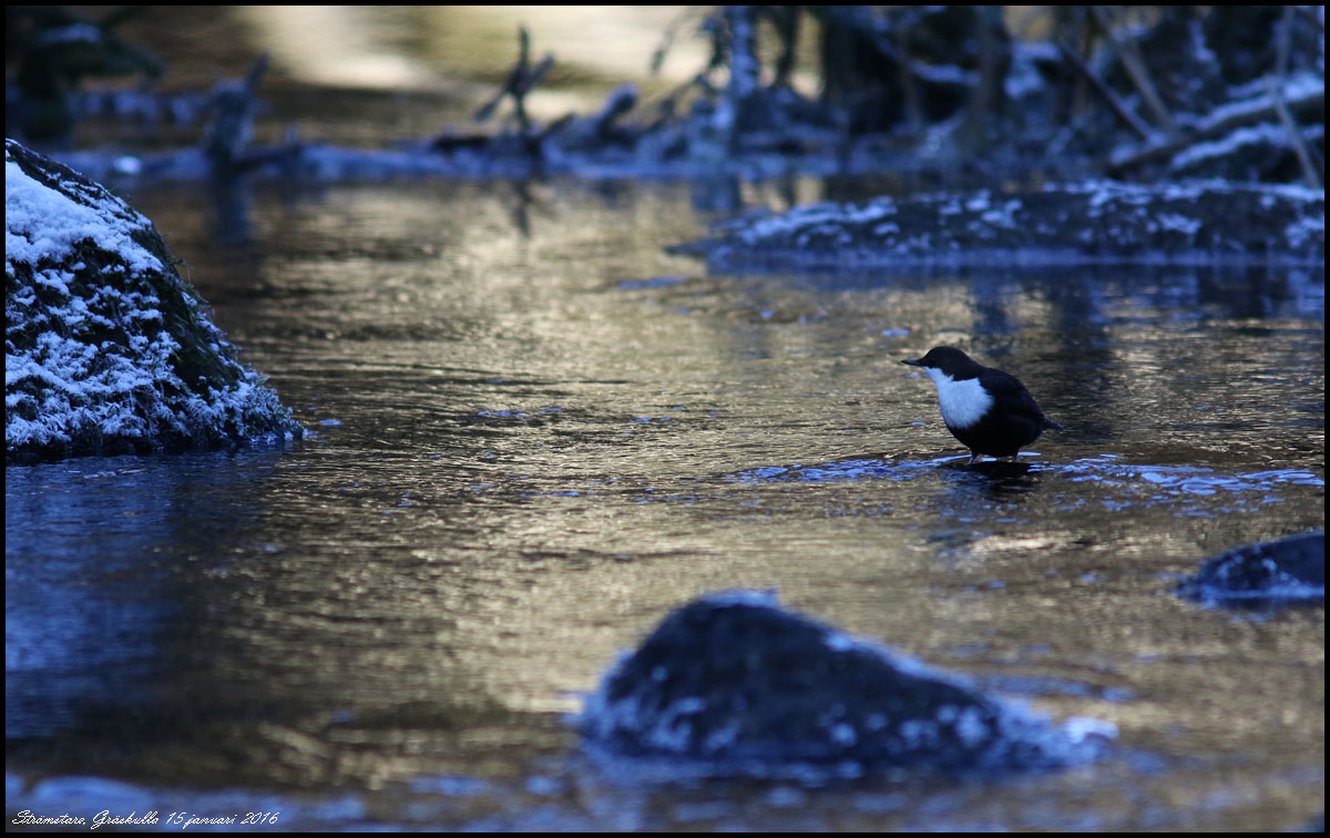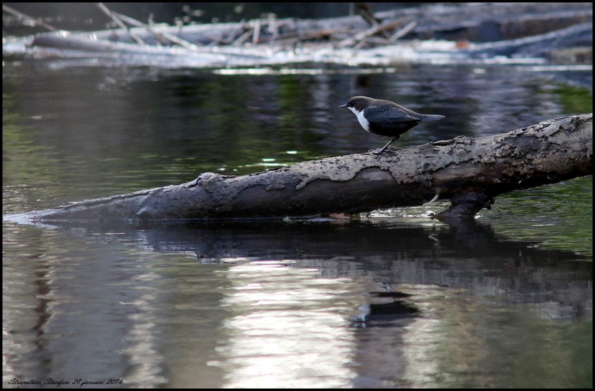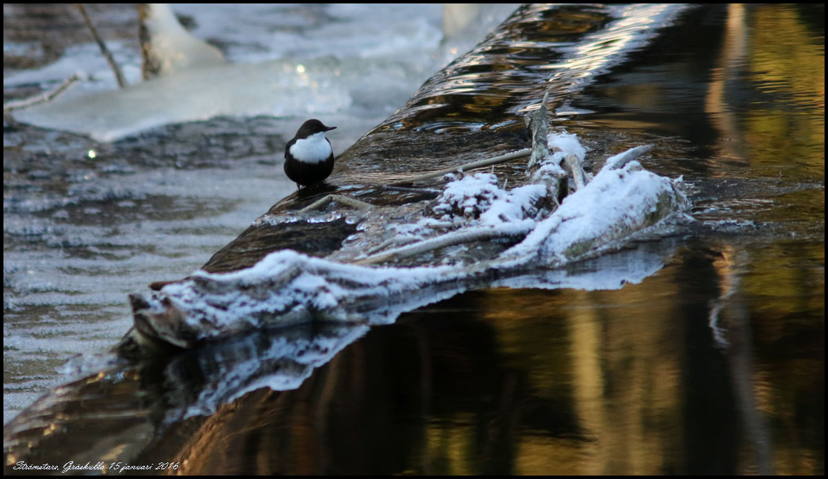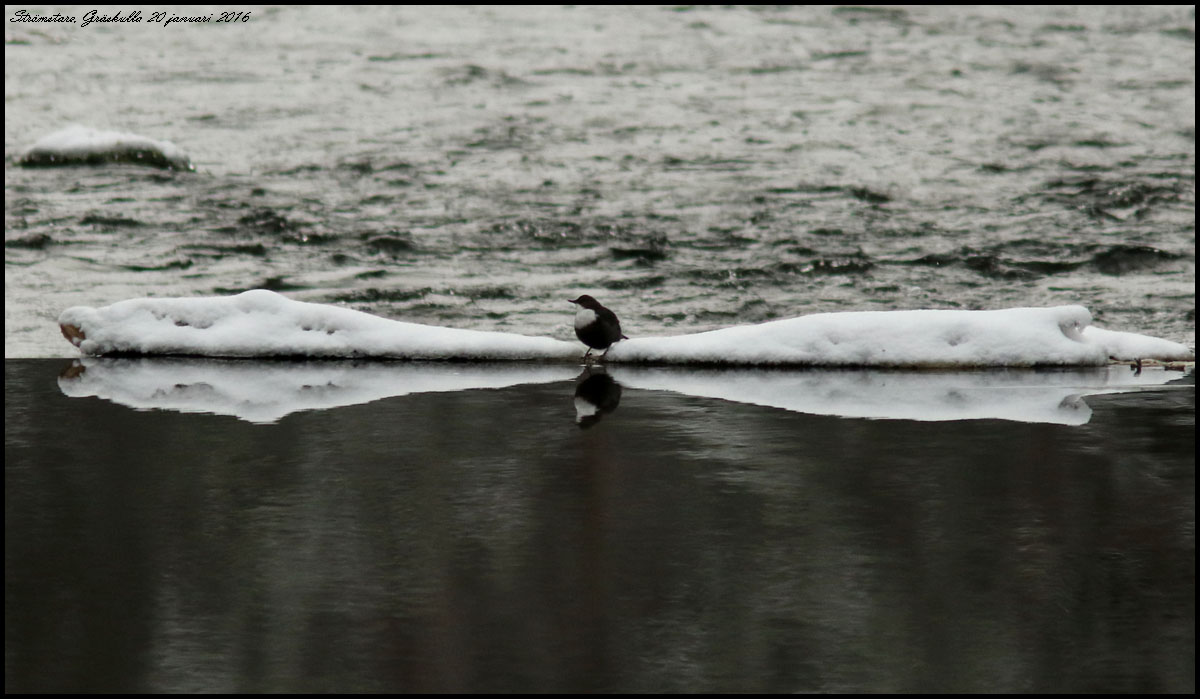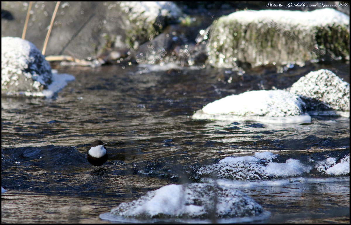 28 januari. All snö försvunnen efter temperaturer på 7 - 8 plus. Idag har det dessutom varit friska, stundtals hårda vindar. Vid Stenfors fanns en ringmärkt strömstare. |
