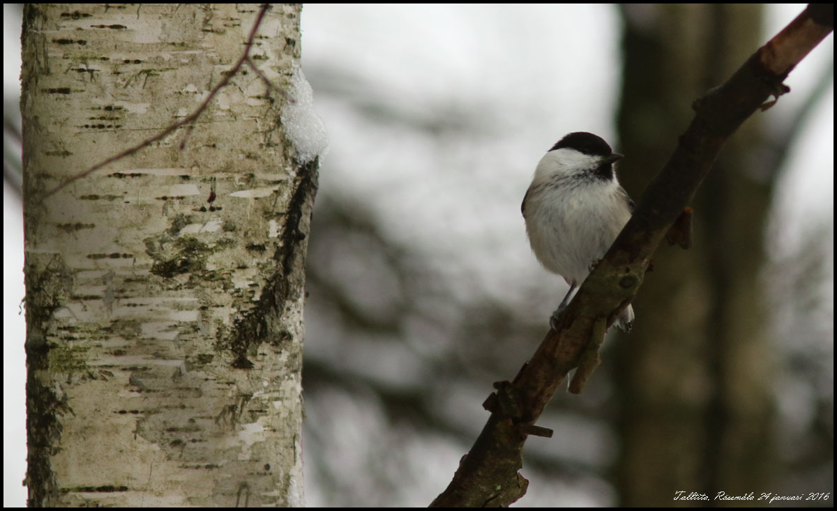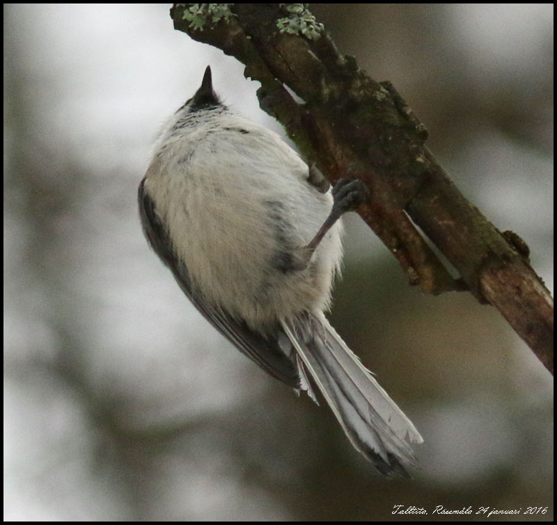 Inre armpennornas ytterfan är ljusa hos talltita och bildar en ljus "panel" på vingen. Stämmer bra på bildfågeln. Den var tyvärr tyst, lätet är ju annars helt avgörande. |
