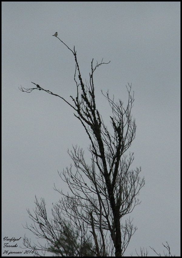 | 26 januari. Idag har jag varit i Fornebo. På promenaden sågs en varfågel på samma plats som för drygt ett år sedan, ett hygge sydväst om Fornebo. Dagens varfågel sågs i trädgården i Fornebo för ett par veckor sedan. |