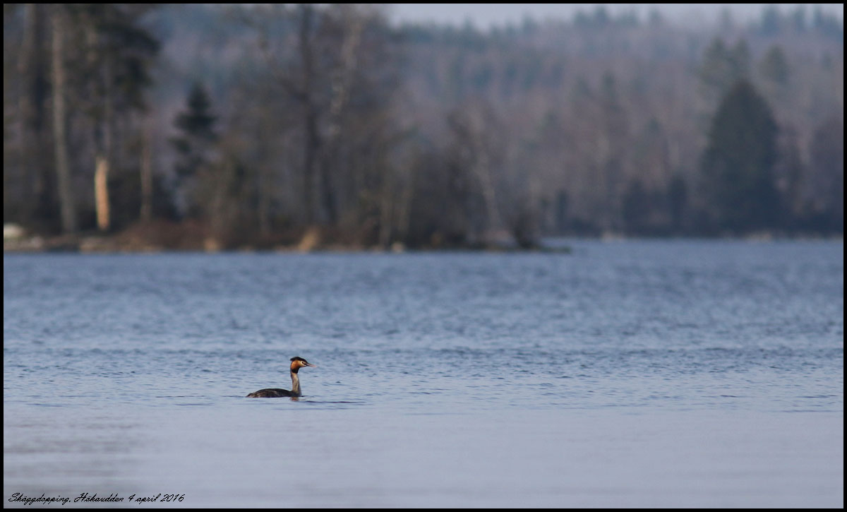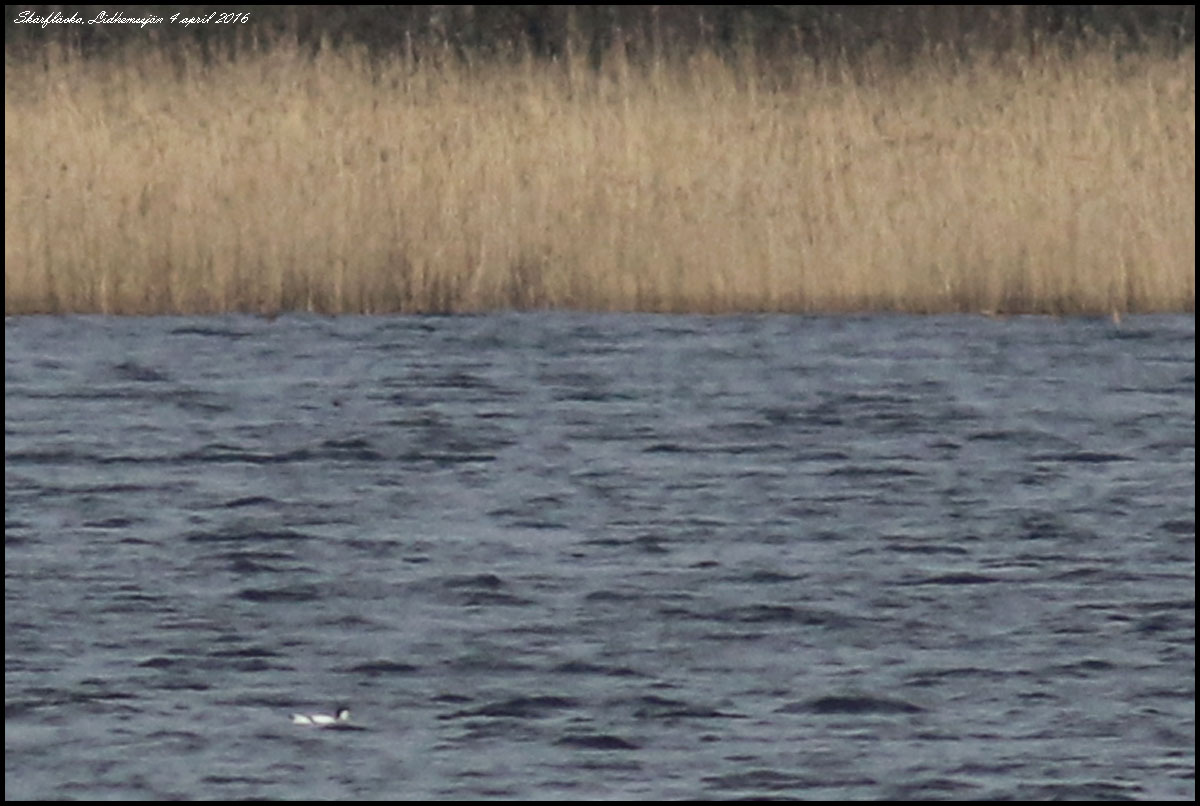 4 april. Kul skådning idag med skärfläcka som mest oväntade. Den låg simmande i mitten av Lidhemssjön. |