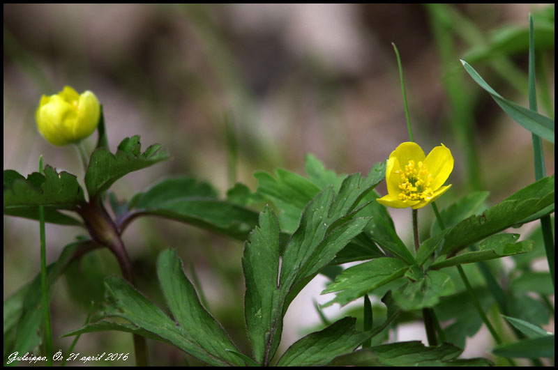 Ör. Inga fågelbilder men intill stigen blommade två gulsippor.
