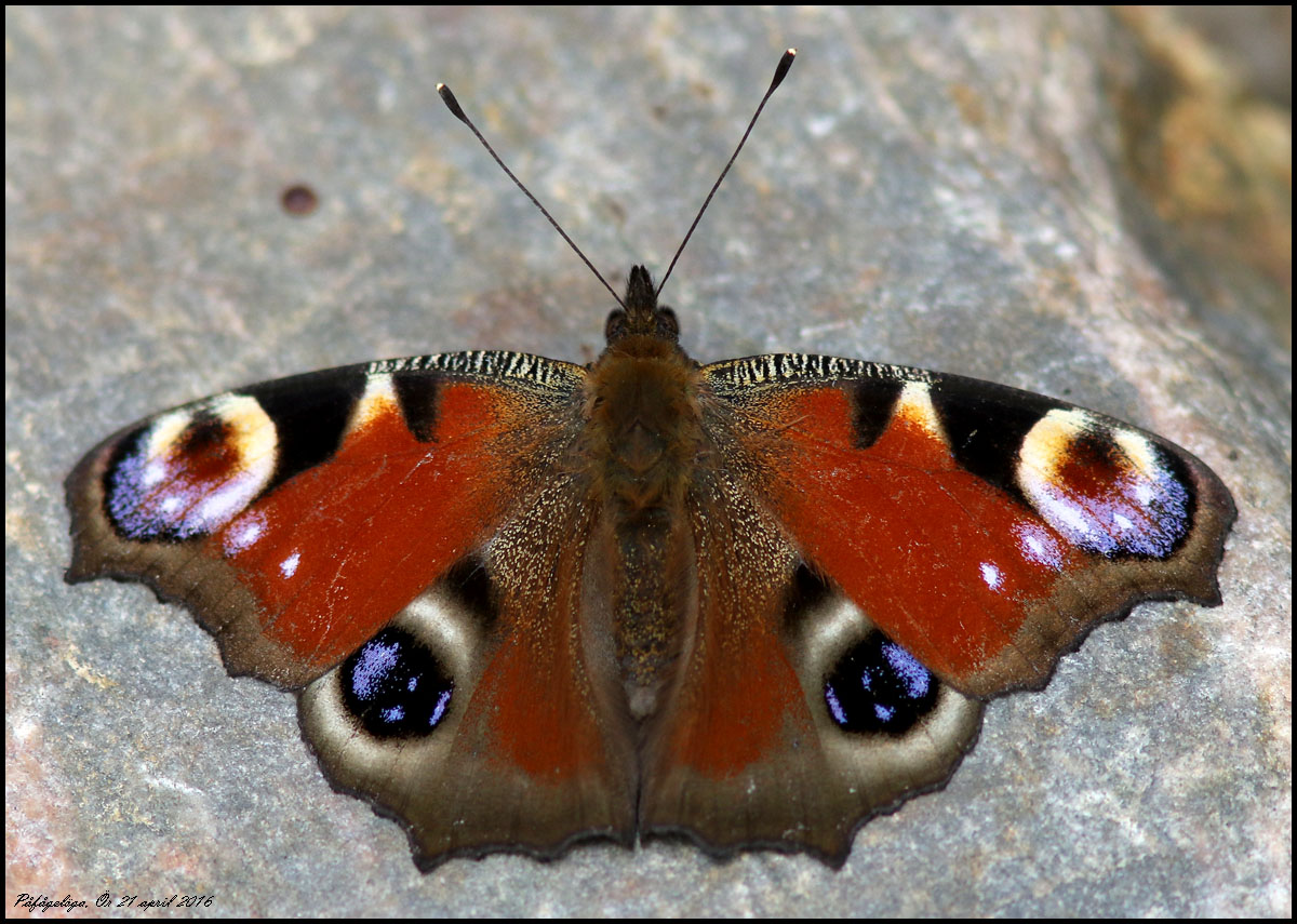 På en sten solades sig ett påfågelöga (heter det så?) |