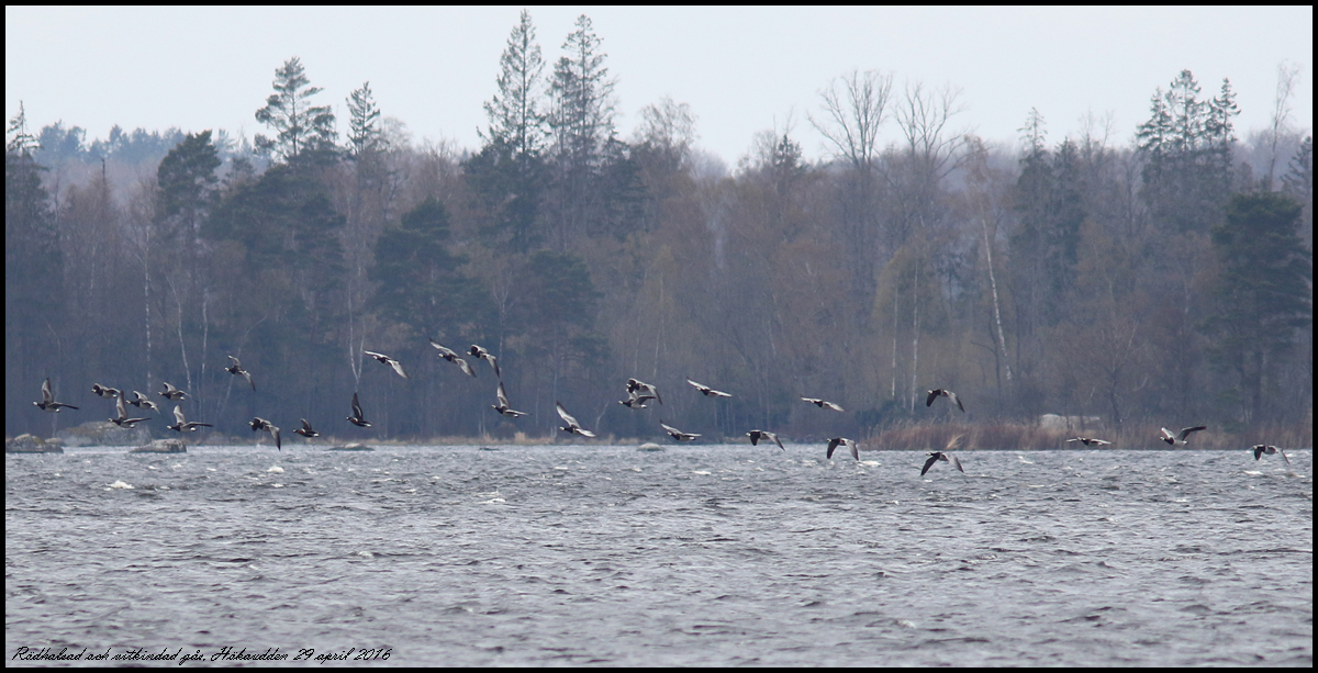 29 april. Äntligen hittade jag rödhalsad gås bland alla vitkindade. Jag har letat bland hundratusentals vitkindade utan resultat förrän idag. Och då var de två till och med. Många bilder men det får det bli. |