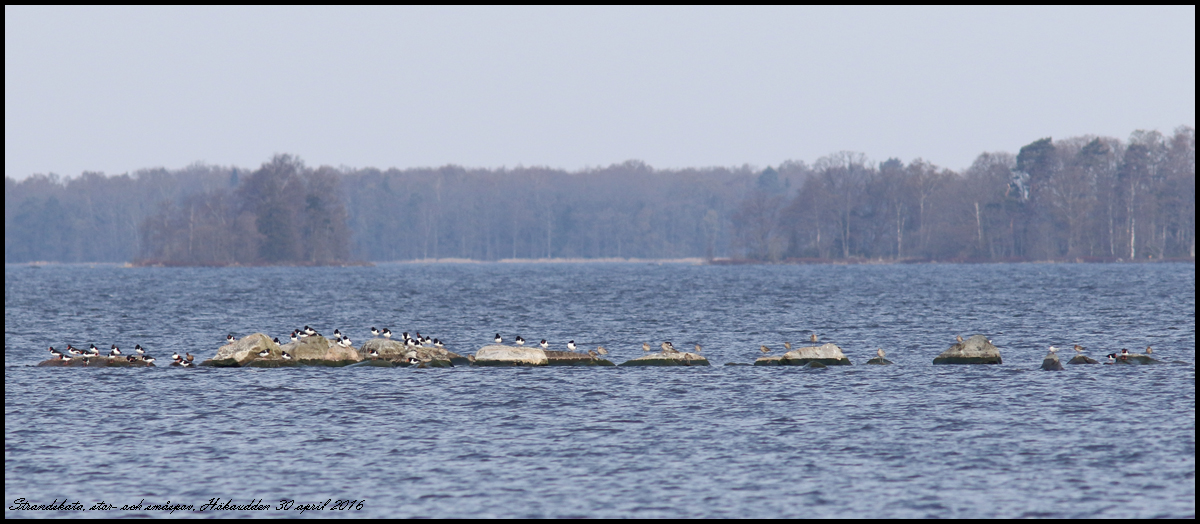 På stenarna fanns strandskator, stor- och småspov och ett skedandspar. |