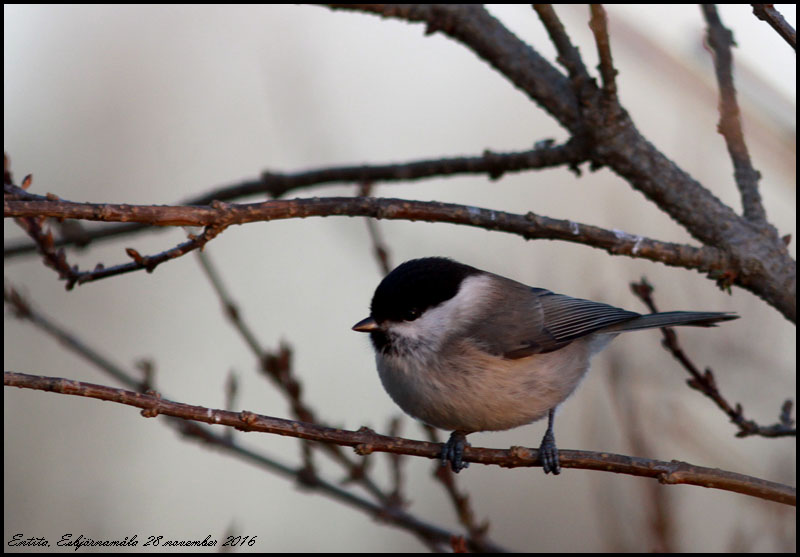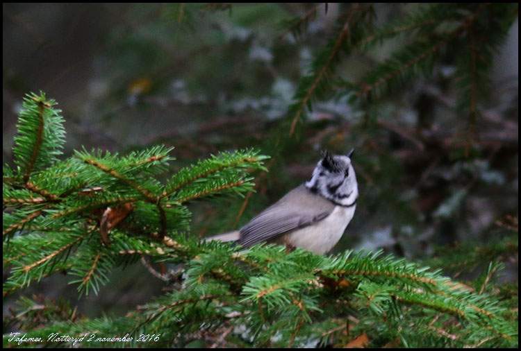 | 2 november. Dagens kursutflykt till Notteryd gav lite mer än gårdagens men visst är det tyst i novemberskogen. Svartmes och tofsmes såg vi. |