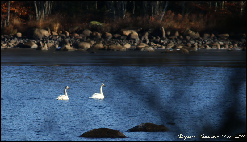 | 11 november. Kort besök på Hökaudden. Tre sångsvanar låg inne i viken. |