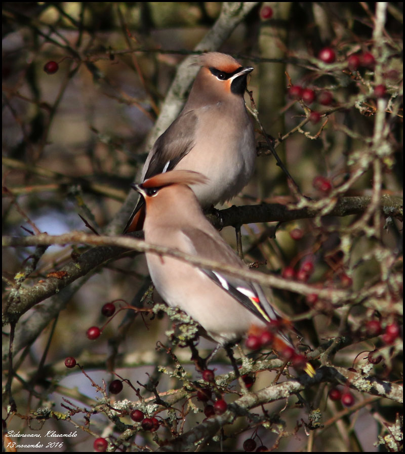 | 13 november. Promenad vid Klasamåla. En flock sidensvansar sökte föda bland hagtorn och äpplen, |