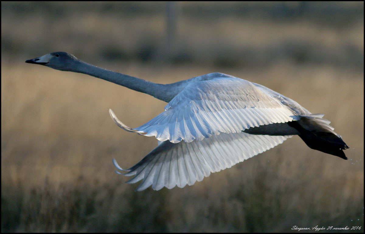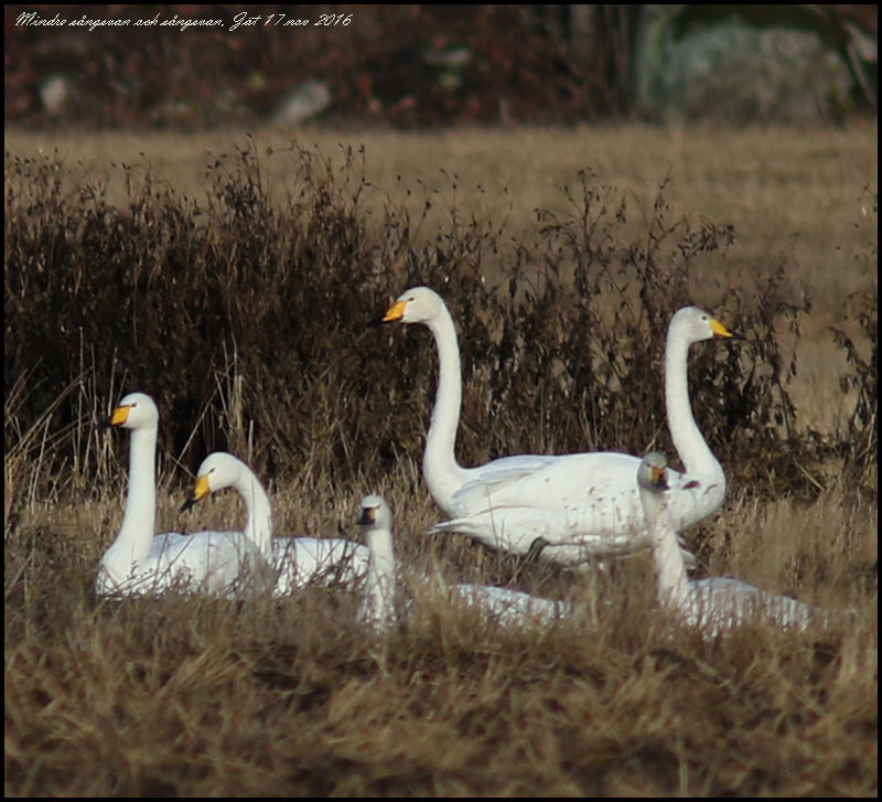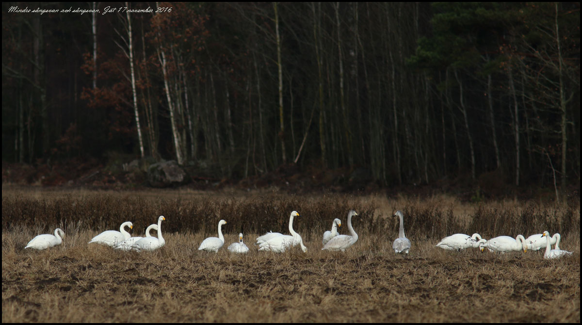 | 17 november. Dagens skådande skedde i Jät. Norr om badplatsen rastar minst 170 sångsvanar och i flocken hittade jag en mindre sångsvan. |