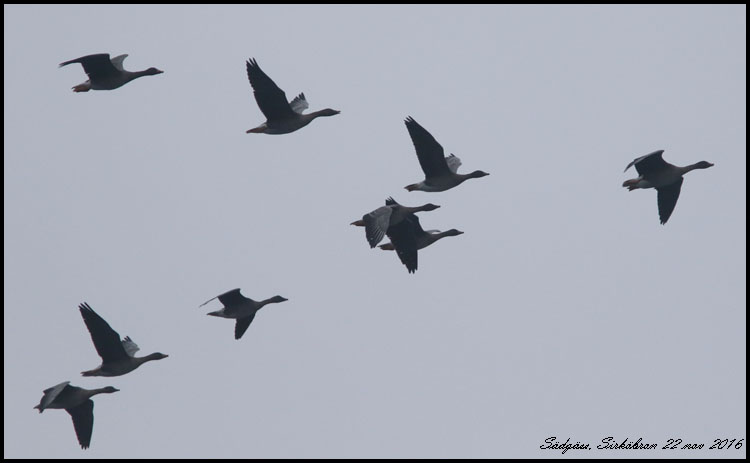 | 22 november. Ny utflykt med fågelkursen, idag tredje gruppen. Bjurkärr och broarna till Sirkön men tyvärr lite grått väder. Sädgäss sträckte vid Sirkölbron. |