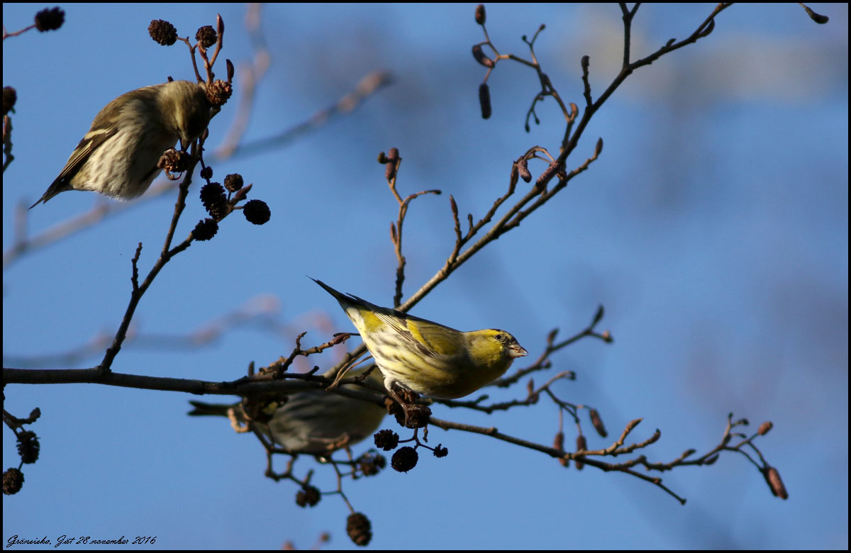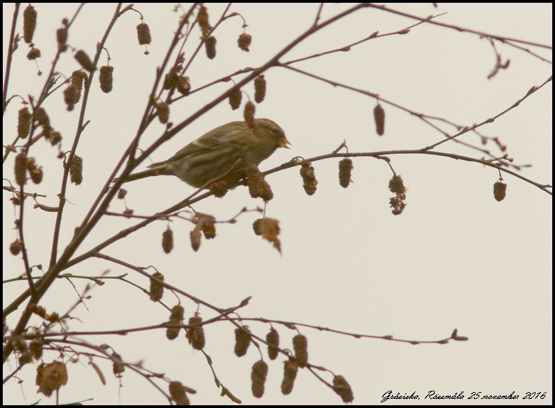 | 25 november. Nu är gråvädret tillbaka. Då passar väl gråsiskan in men frågan är om det är en brunsiska. Eller är det bara felinställd vitbalans i kameran? |