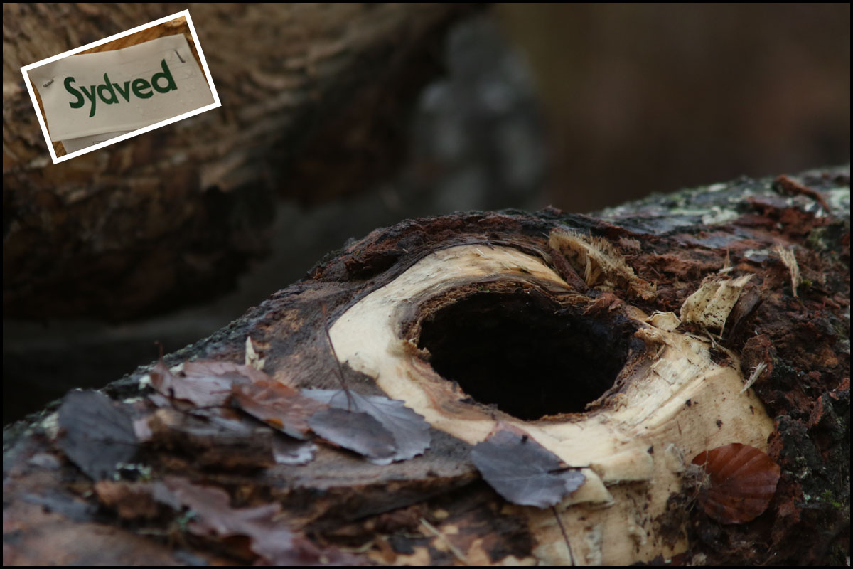 Vi gick förbi en lövmassavedstrave. Etiketten visar att den är Sydveds "bidrag" till biologisk mångfald. En asp med bohål efter spillkråka borde ha fått stå kvar istället för att gå till råvara åt industri. Svensk ekonomi klarar den uppoffringen.