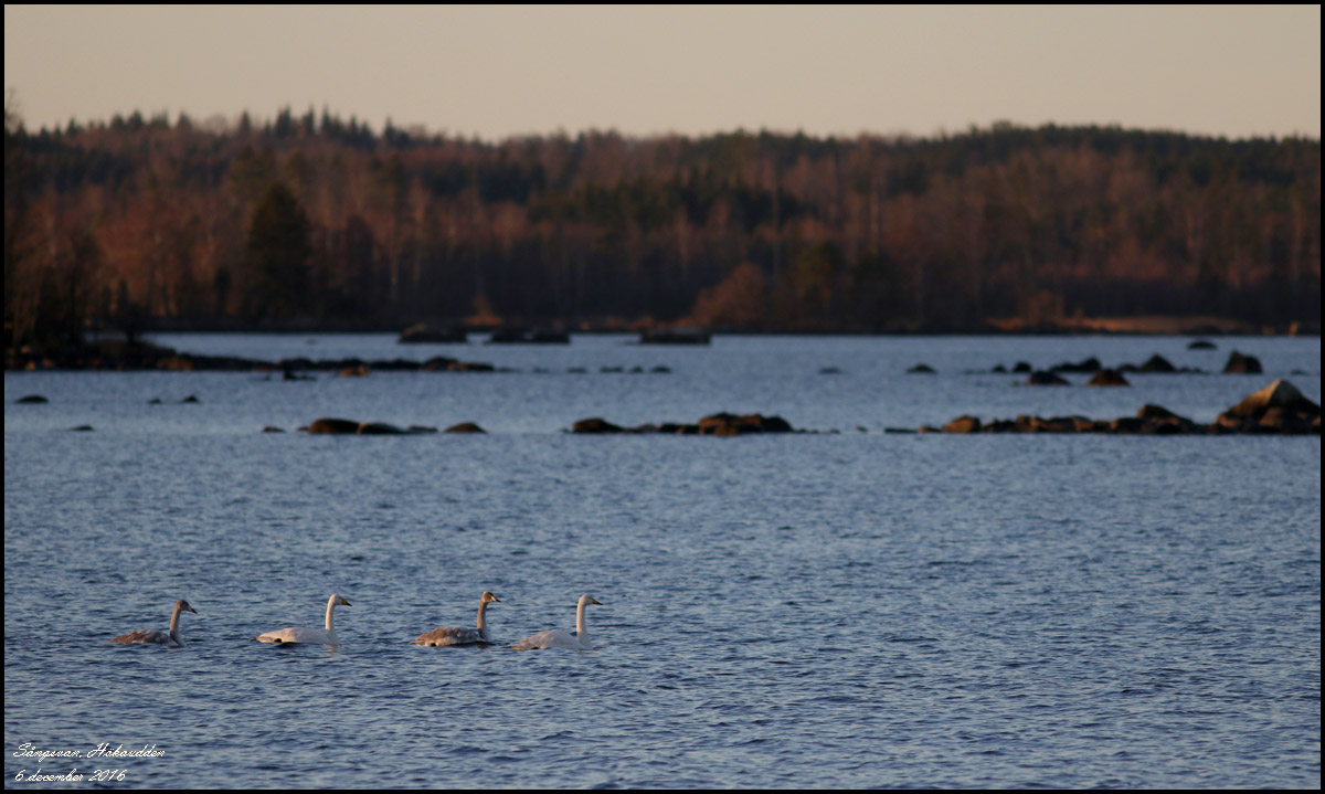 Ovanligt många sångsvanar, ca 30, fanns utspridda i området. Kan ha att göra med det låga vattenståndet som ju skapar nya betesbottnar.
