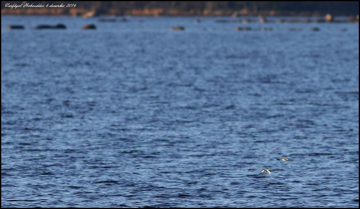 Efter en knapp minut flög de vidare över vattnet men åtminstone den ena landade på en holme utanför fritidshusen. De var nog rivaler om samma vinterrevir? |