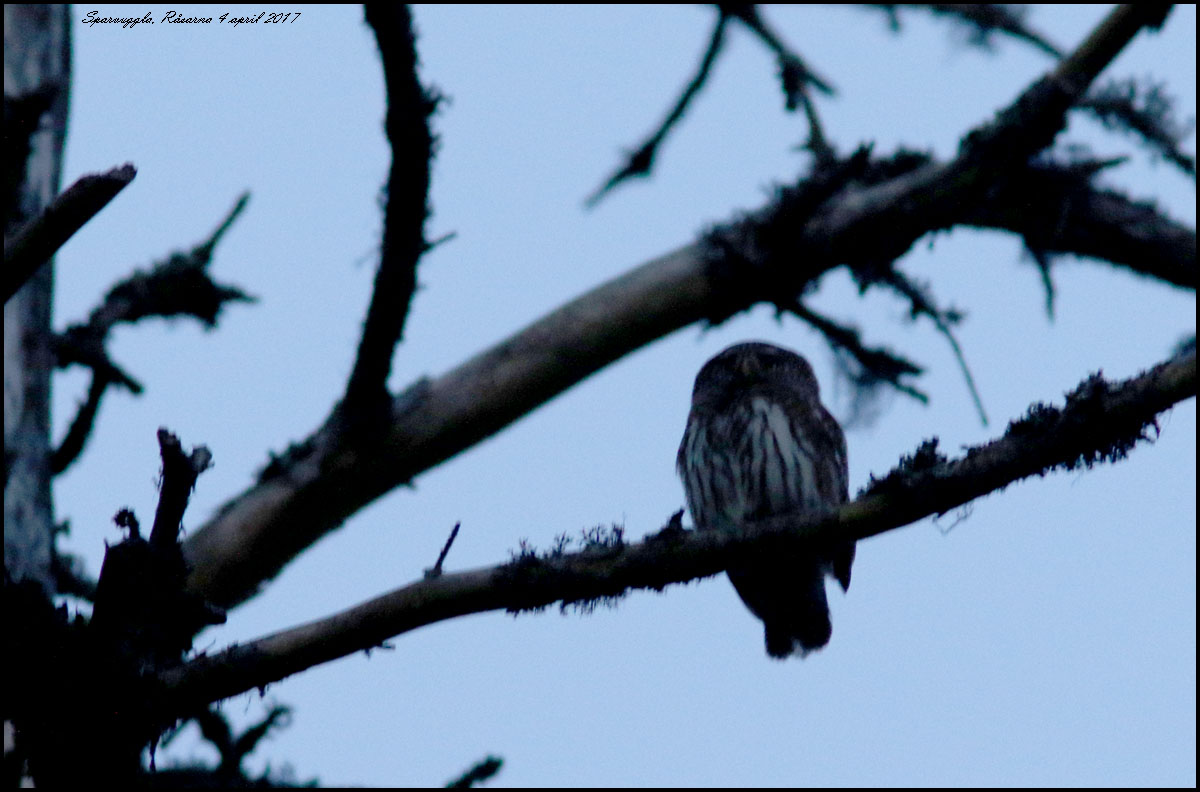 4 april. Tredje fågelkursen hade riktig tur med vädret, vindstilla och en vacker solnedgång. Sparvugglan var på plats vid Råsarna och vid Lilla Attsjön sågs enkelbeckasin och sträckande tranor. |
