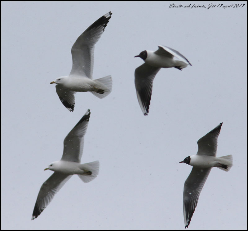 | Mängder av måsar rastade vid Jätfjorden och bland alla dessa hittades två svarthuvade måsar som jag tyvärr inte fick några bilder på. Bilden visar fiskmåsar och skrattmåsar. |