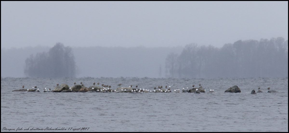 | 5 april. Inte så mycket fågel vid Jätfjorden idag men sträckande storskarvar och fyra rastande svärtor noterades. Frisk nordvästlig vind gjorde att det blev två kylslagna timmar. |