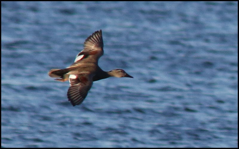| 6 april. Frisk nordvästlig vind idag också. Två ejdrar rastade hitom Slungö. Inte lätt att få perfekt skärpa på förbiflygande kniphanne! |