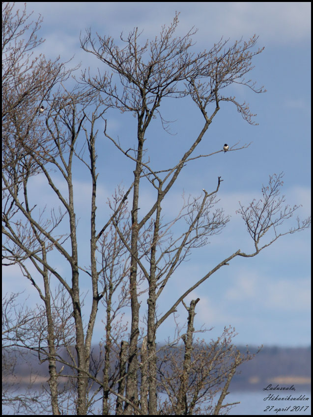 | 27 april. Kallt och kyligt och ett passerande snöväder innan det sedan klarnade upp. Våren har tagit lite paus men vid udden fanns två ladusvalor, de första jag ser i år. |