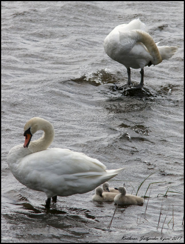 | 6 juni. Ett knölsvanspar har fått ut tre ungar i Jätfjorden. |