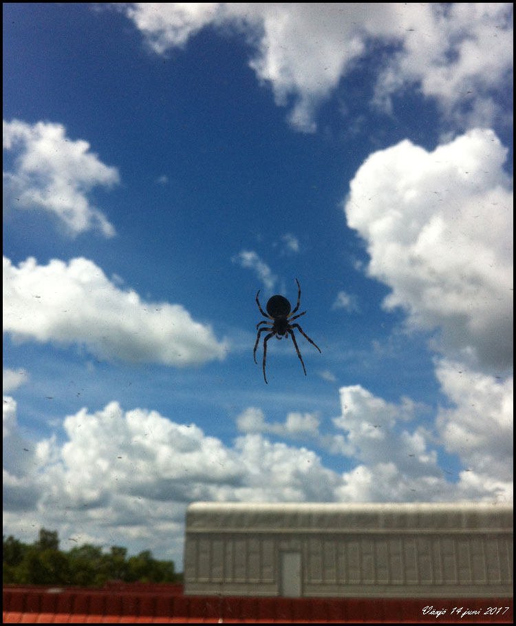 | 12 - 15 juni. Några dagar på lasarettet, inte så kul men kunnig o trevlig personal. Tornseglare, måsar och duvor utanför fönstret. En spindel fick napp i nätet, också på utsidan förstås. iphone 4 är inte som EOS 7 Mk2. |