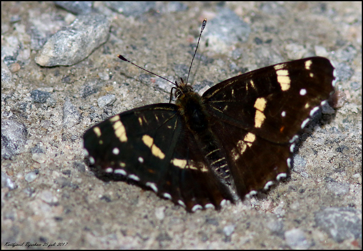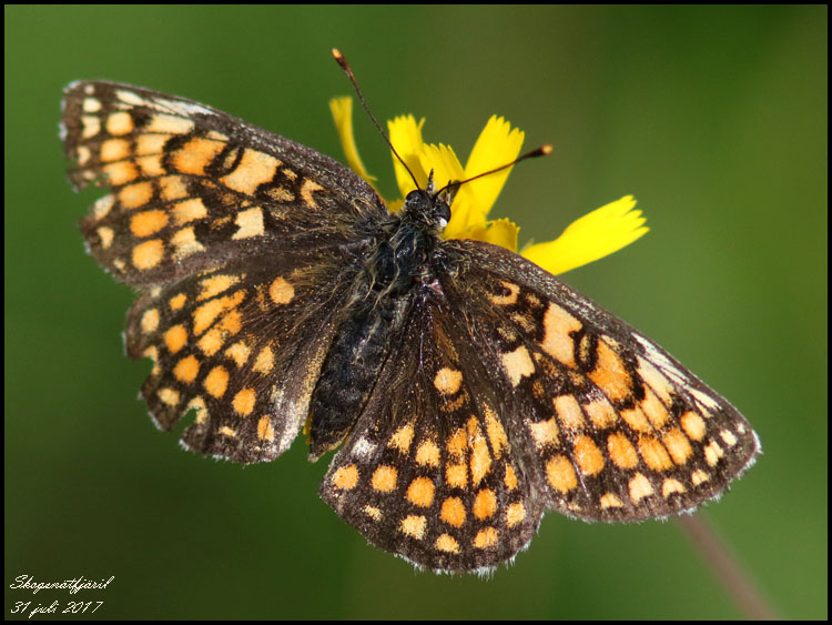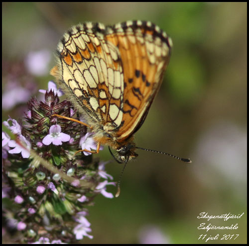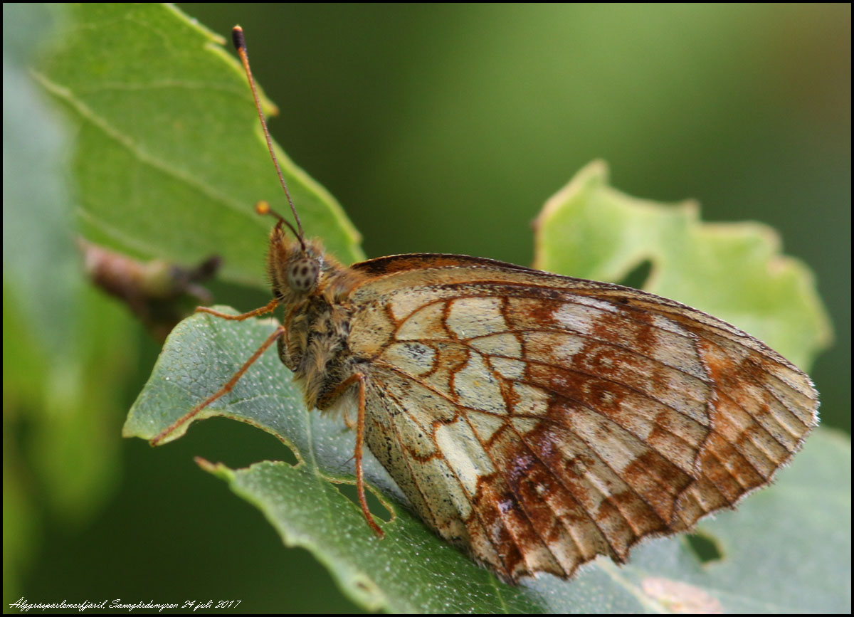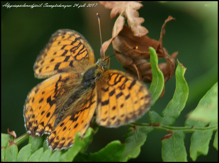 | 24 juli. Molnigt väder idag efter en natt med regn. Inte många fjärilar men älggräspärlemorfjäril. |