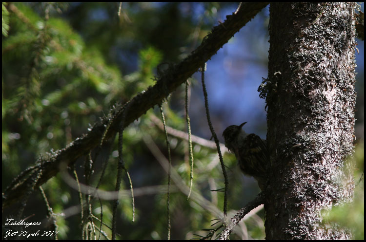 Tyst och stilla i skogen men står man still så syns fåglar i grenverket lite överallt. Trädkrypare. |